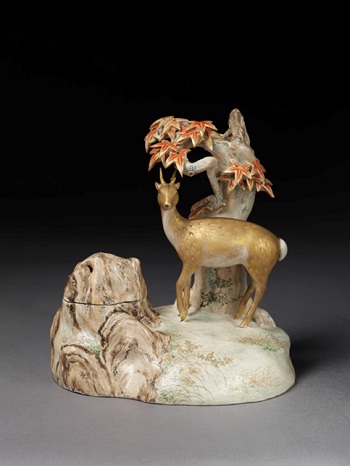 This year has marked the 150th anniversary of the arrival in the United Kingdom of the Satsuma Students from Satsuma, present-day Kagoshima. The area became famous for its ceramic production and, in particular, gold and coloured enamel decoration. Satsuma ware became especially popular in Europe in the late 19th century at the height of the fashion for all things Japanese. In connection with this anniversary, a number of fine pieces of Satsuma ceramics are on display, two of which are from the famous Chin Jukan kiln in Kagoshima.