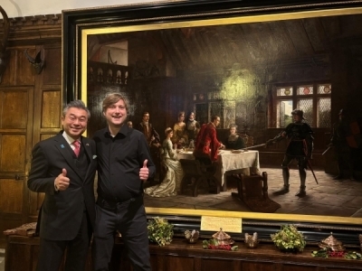 The previous day Ambassador Suzuki had visited Mostyn Hall, owned by Baron Mostyn. There he was given an account of the long-standing connections between the Mostyn family and Japan, and he viewed exhibits on the history of Mostyn Hall. He also exchanged views with Lord Mostyn on Japan-Wales exchange in the North Wales region.
