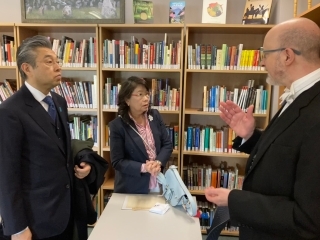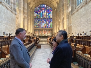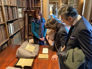 Ambassador and Madame Suzuki also visited Eton College. They visited the College buildings and the Chapel. During their visit, they viewed historical collections related to Japan that the college holds and observed a Japanese language lesson.