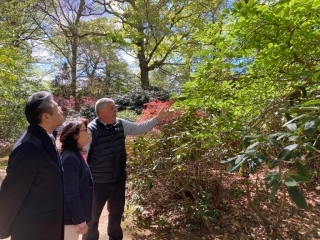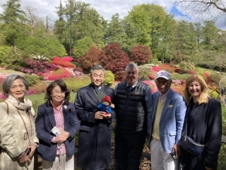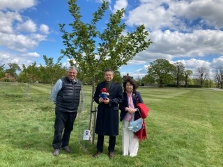 Under the guidance of Keeper of Gardens, Mr John Anderson, Ambassador and Madame Suzuki, along with members of the Sakura Cherry Tree Project, viewed the sakura cherry trees planted in Windsor Great Park provided by the project.