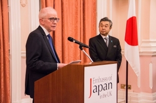 2月5日、鈴木浩駐英国日本国大使は、英日法律協会(BJLA)との共催で、在英国日本国大使館において日英法律家レセプションを開催しました。同レセプションは、日英法律家の相互理解と交流を促進する目的で開催され、今回で7回目の開催となり、リード英国最高裁判所長官を始めとする英国司法関係者、英国政府・議会関係者、学術関係者等に加え、英国に在住又は滞在している日本人裁判官、検察官、弁護士等約120名の参加がありました。