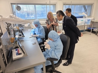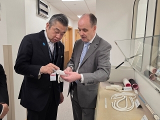 鈴木大使は、13日、テルモアオルテック社の工場を訪問し、同社の取組や実績について説明を受けた後、工場内の人工血管製造工程を視察しました。