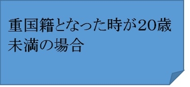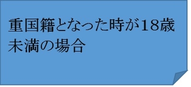 - また、外国国籍の取得申請が法定代理人である父母によりなされ、外国国籍を取得した場合にも、自己の志望による外国国籍の取得に当たるものと解されていますので、ご注意下さい。