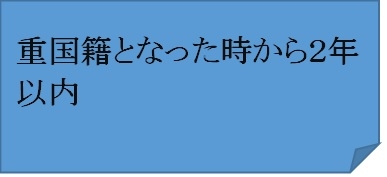 外国の国籍と日本の国籍を有する人(重国籍者)は、次の期限内に、どちらかの国籍を選択する必要があります。